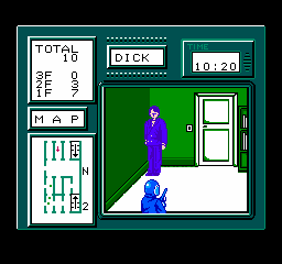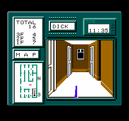 Certainly, Wolfenstein 3D had some innovative technology with its ray casting technique.[7] But First-Person Shooters had existed before - long before, as Maze War was there in 1974. In anticipation, I suppose one could argue that Maze War was not a proper shooter because the player did not actually aim, since pressing the spacebar would send a bullet and eliminate any opponent occupying the same space, thus making the game closer to a maze chase. We could debate for quite a long time, but I would instead simply cite another case of "prior art" with a 1988 game titled Hostages: Rescue Mission (Infogrames 1988). My only experience with it is through the NES port titled Rescue: The Embassy Mission (Kemco 1989). This game is divided into many parts with differing gameplay, and the last part involves navigating through an embassy hunting down terrorists and shooting them. As with Maze War, it is step-based 3D, in which the player's character can advance one square forward or turn 90 degrees either side. However when an enemy is spotted in the same square, the player can hold the A button and enter a continuous firing mode; the directional pad of the NES controller now controls the aim of his rifle and he must shoot at the enemy occupying a fraction of this space. In addition, the enemies exist outside the frame delimited by the player's viewpoint, wander around the corridors, and can enter the frame to surprise the player who might not have enough time to react (while they do not shoot from off-frame, that may have more to do with the difficulty level that would result from the one-shot-kill nature of the game, a feature intended to provide maximum realism in line with the game's narrative).