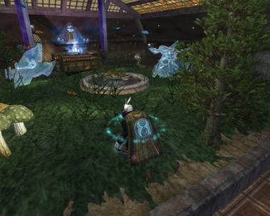The transparent and institutional mundane is a good place to begin an exploration of Everquest 2, and I will start at the entry gate to Qeynos, my home city in the game. Located on the continent of Antonica, Qeynos contains ports, market places, temples, and the administrative offices of the city government. It also serves as the center of the "good" races of Everquest 2. The city is populated by both player characters and non-player characters (NPCs). Player characters are a class of avatar that author Jens Jensen (2001, p. 30) refers to as "virtual humans" or the like that serve as more or less direct extensions of a player's body and will into game space. NPCs, by contrast, are "artificial life" or "Alife." Alife refers to game objects that serve as virtual counterparts to real life flora and fauna, and constitutes one of the most direct ways that mundanity inserts itself into the often fantastical game space. The presence of trees, flowers, and even dogs and cats reinforces the idea that the city of Qeynos is a real place with an existence independent of the player. Players are thus encouraged to see the world of the game as real in much the same sense that their physical hometowns are real.